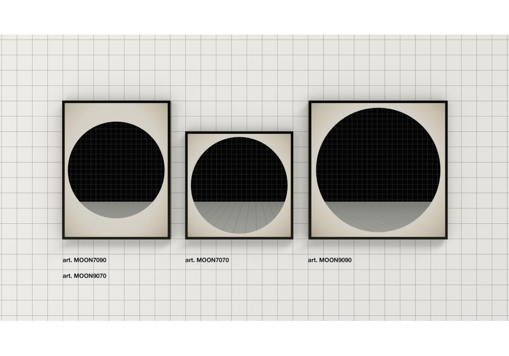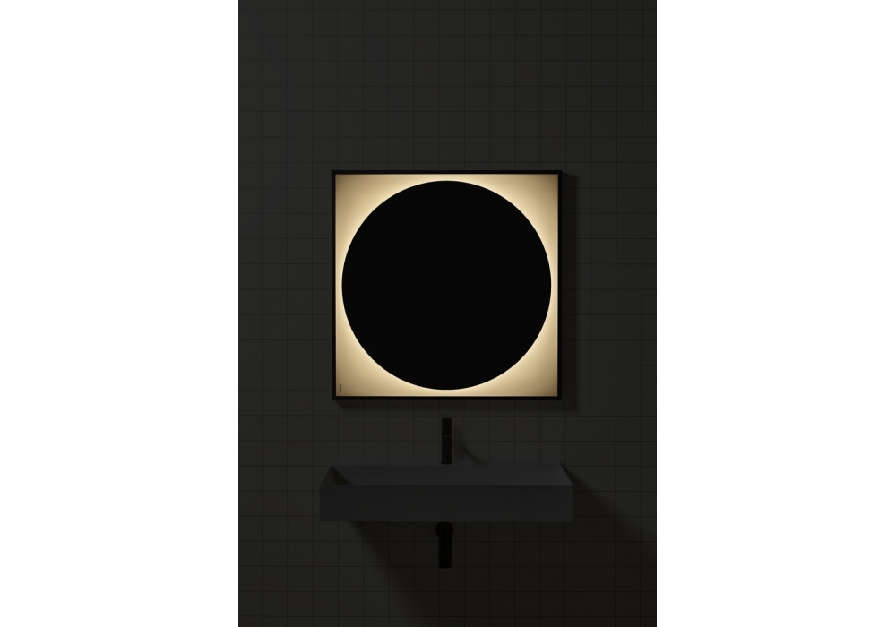 Moon von Gumdesign + Antonio Lupi entworfen, ist ein doppelschichtiger, sandgestrahlter Spiegel mit Hintergrundbeleuchtung und einem mattschwarzen Aluminiumrahmen. Verfügbar in mehreren Abmessungen.