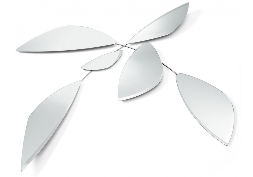 Leaf von Ricardo Bello Dias für Gallotti&Radice entworfen, ist ein Zusammensetzung von Spiegeln Extralight 6mm oder Rauchglas “grigio Italia” 5mm mit Facettschliff, an Paneelen unterschiedlicher Neigung befestigt. Verfügbar nach seriemässigen Kompositionen. Verbindungsmetallteile verchromt oder bruniert.