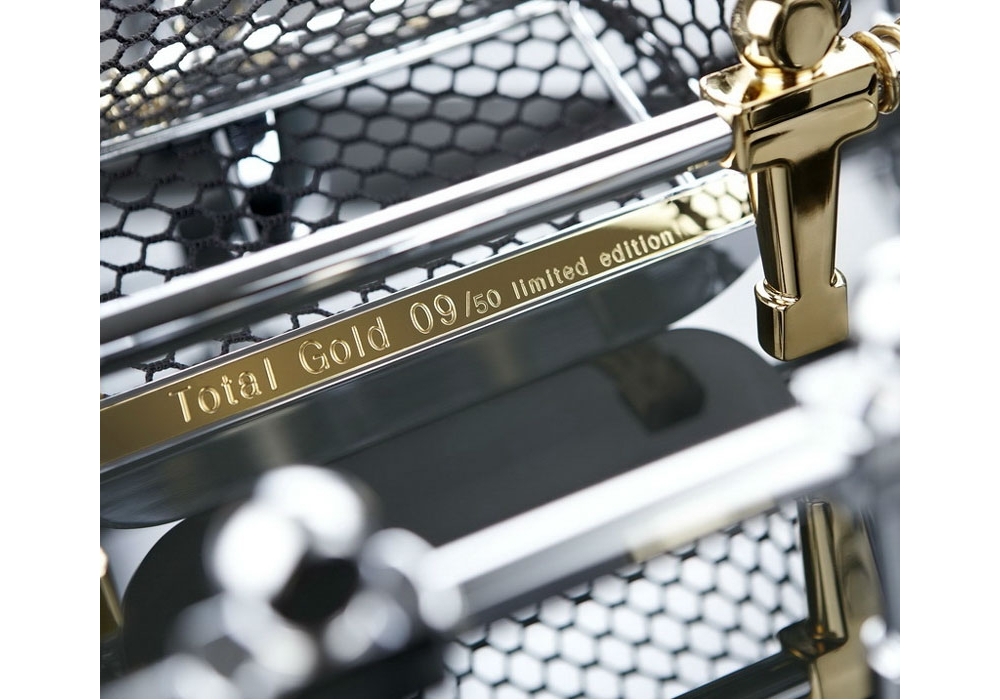 Cut to black again with the Cristallino (Calcio Balilla collection) by Adriano Design for Teckell. Cristallino GOLD LE is the perfect representation of the union between the elegance of gold and the precious perfection typical of Teckell. A foosball table embellished with exclusive 24 carat gold plated accessories, making Cristallino GOLD LE among the most coveted of the collection. This numbered and limited series is available in only 50 exemplars.