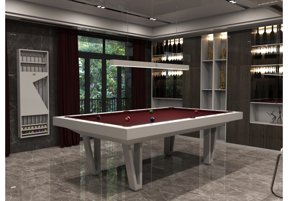 Cayenne, entworfen von Cavicchi, ist ein Billardtisch, der mit großen Poollöchern, mit Zwischenlöchern, schmalen klassischen Doppelspiellöchern und auch in der internationalen Version ohne Löcher angefordert werden kann. Das Profil der Löcher ist mit feinem Leder bezogen. Der lackierte Cayenne Two Billardtisch Mod. ist mit einer Abdeckung ausgestattet, um ihn in einen dreiteiligen Esstisch zu verwandeln (auf Anfrage). Auf Anfrage in verschiedenen Ausführungen und Größen erhältlich.