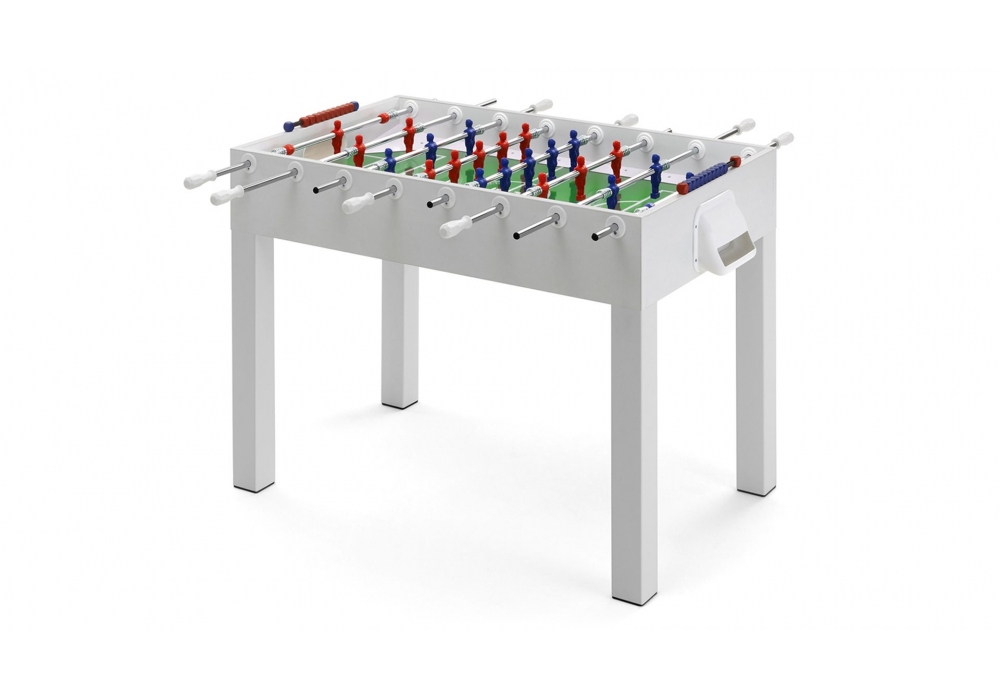 Fido von Basaglia + Rota Nodari für Fas Pendenza entworfen ist ein viereckiger Tischfußballtisch mit einem Spielfeld aus hochbeständigem Hartglas. Das Gehäuse besteht aus MDF, das mit Kunststofflaminat überzogen ist. Die Beine sind viereckig und in einem Metallgehäuse mit kratzfester Lackierung gehalten. Fido ist in verschiedenen Ausführungen und Schaftausführungen erhältlich und wird mit 5 weißen Spielbällen geliefert.