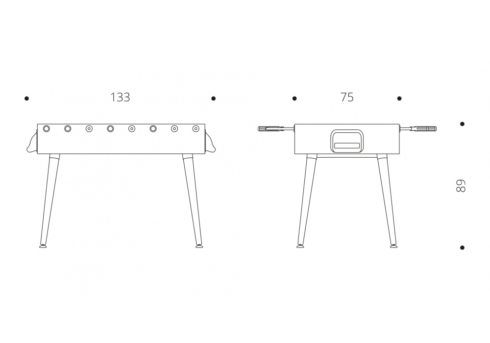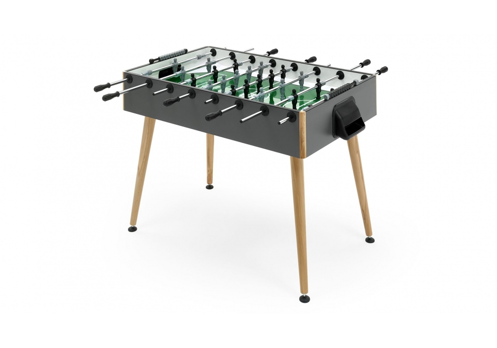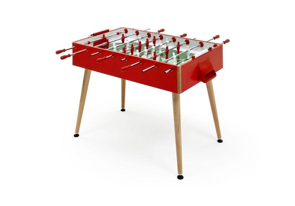 Flamingo von Basaglia + Rota Nodari für Fas Pendenza entworfen ist ein viereckiger Tischfußballtisch mit einem Spielfeld aus hochbeständigem gehärtetem Glas. Die Möbel bestehen aus Holz, das mit farbigem Kunststofflaminat überzogen ist. Die Beine bestehen aus Buchenholz mit verstellbaren Füßen. Flamingo ist in verschiedenen Ausführungen und Schaftversionen erhältlich und wird mit 5 weißen Spielbällen geliefert.
