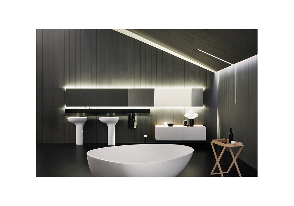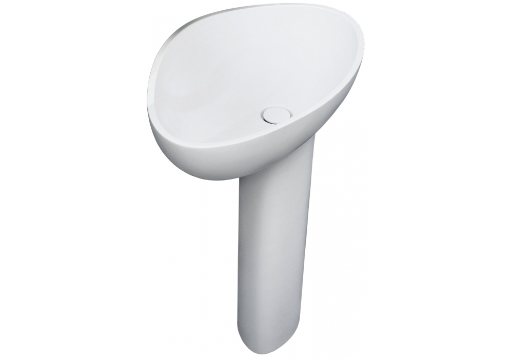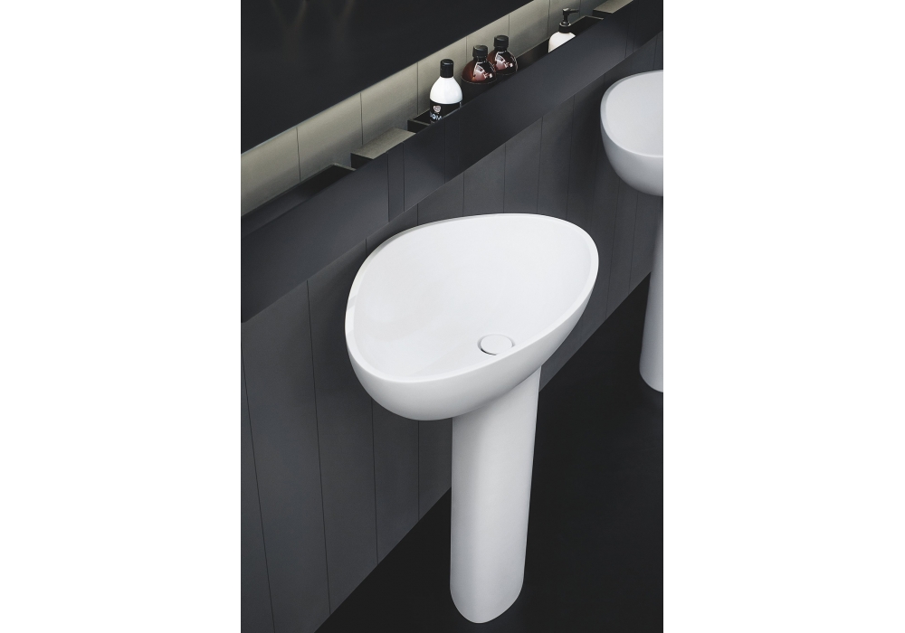Drop von Benedini Associati für Agape entworfen, ist ein freistehendes Waschbecken aus Cristalplant® biobased in verschiedenen Ausführungen, ohne Hahnloch, frei fließend, inklusive Befestigungsset. Das Waschbecken wird mit einer Metallplatte am Boden befestigt. Verfügbar in der Boden- oder Wandablaufversion.