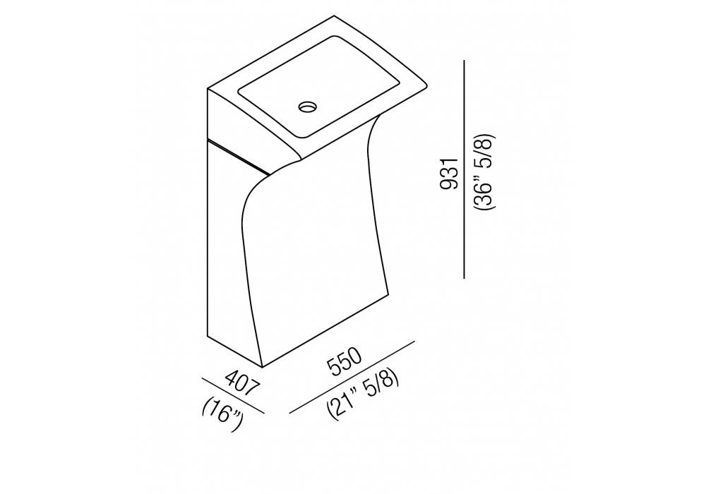 Lito 3 von Angelo Mangiarotti für Agape entworfen, ist ein rechteckiges Waschbecken aus Marmor in verschiedenen Ausführungen, mit Bodenstütze, ohne Hahnloch, freiem Abfluss, inklusive Befestigungsset. Verwendet versteckten Siphon und Abfluss.