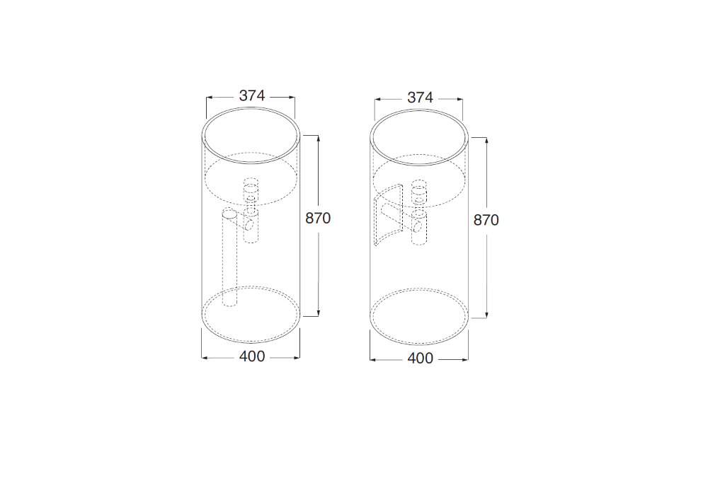 Ph, entworfen von Piero Lissoni, ist ein zylindrisch geformtes Säulenwaschbecken, komplett mit Ablassschraube in Waschbeckenausführung. Erhältlich in verschiedenen Ausführungen.