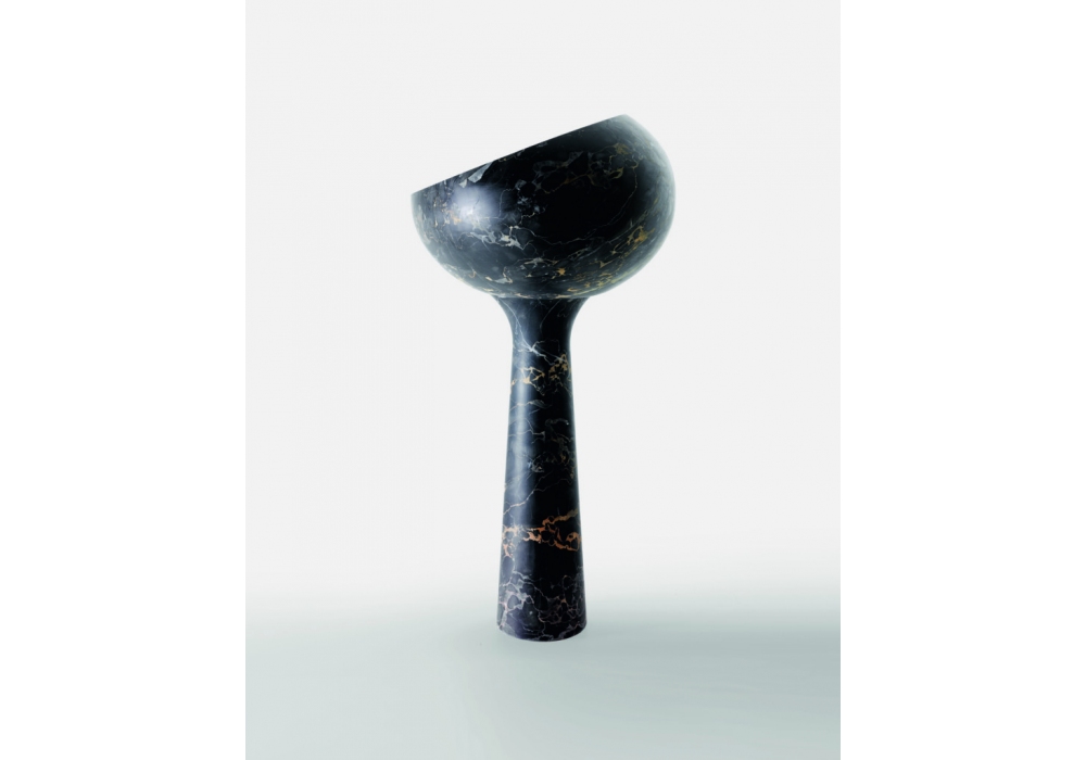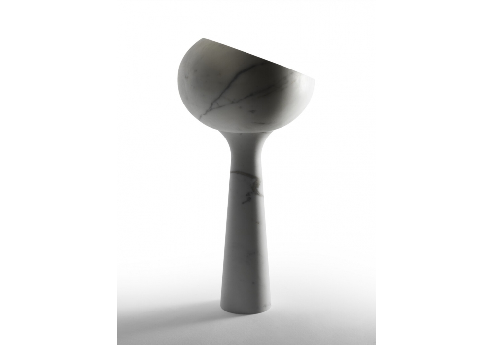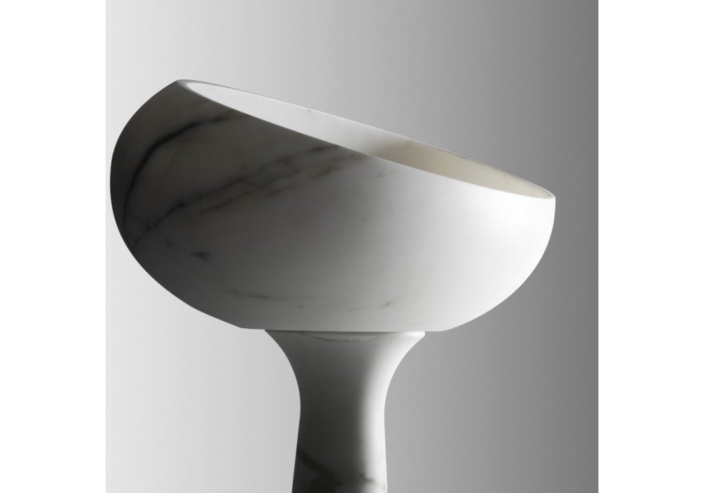 Gong von Enzo Berti für Kreoo entworfen, ist ein freistehendes Waschbecken mit einer ellipsenförmigen Schüssel mit diagonalem Schnitt. Komplett aus Marmor in verschiedenen Ausführungen. Die Innenfläche kann auch in einem chromatischen Kontrast mit Strukturlack ausgeführt werden.