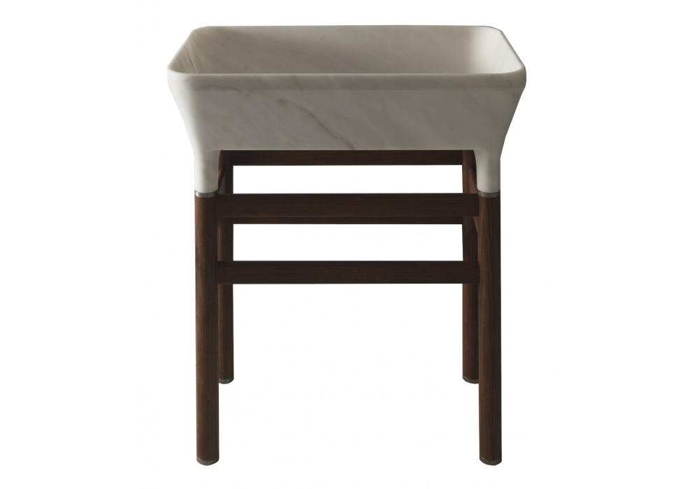 Loto 01 von Enzo Berti für Kreoo entworfen, ist ein Aufsatzwaschbecken mit Lärchenbeinen und Marmorbecken in verschiedenen Ausführungen. Verfügbar in mehreren Abmessungen.