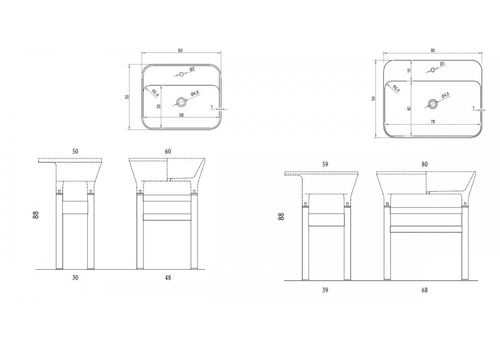 | Abmessungen | 60 x 50 x H 88 cm; 80 x 59 x H 88 cm. |