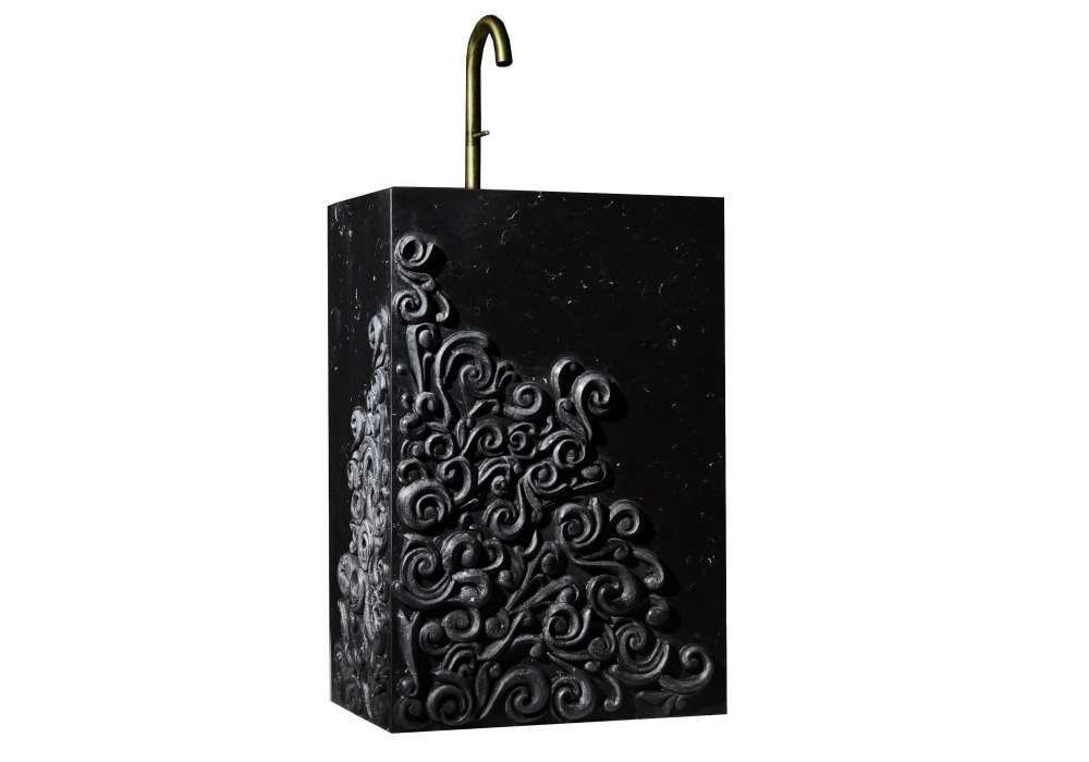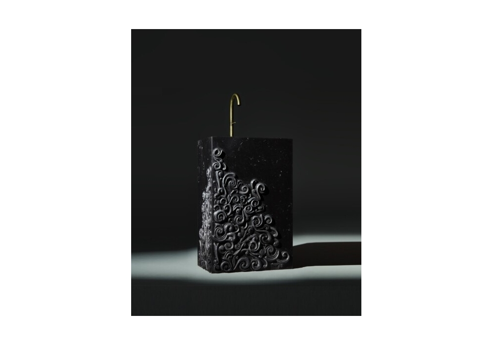 Dame von Christophe Pillet für Kreoo entworfen, ist ein Freistehendes Waschbecken aus glattem, undurchsichtigem Marmor mit gemeißelten Motiven in verschiedenen Tiefen. Auf Wunsch kann die Innenwanne mit einem anderen Marmor gefertigt werden.