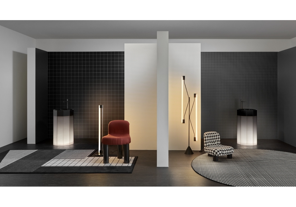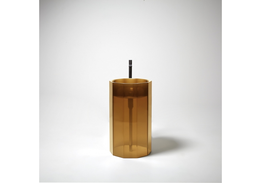 Vitreo von Carlo Colombo und Antonio Lupi entworfen, ist ein bodenstehendes Waschbecken in Cristalmood oder Icemood mit Bodenablauf, mit oder ohne LED-Beleuchtung, mit einem undurchsichtigen Körper, komplett mit offenem Ablauf, Siphon und starrem Rohr.