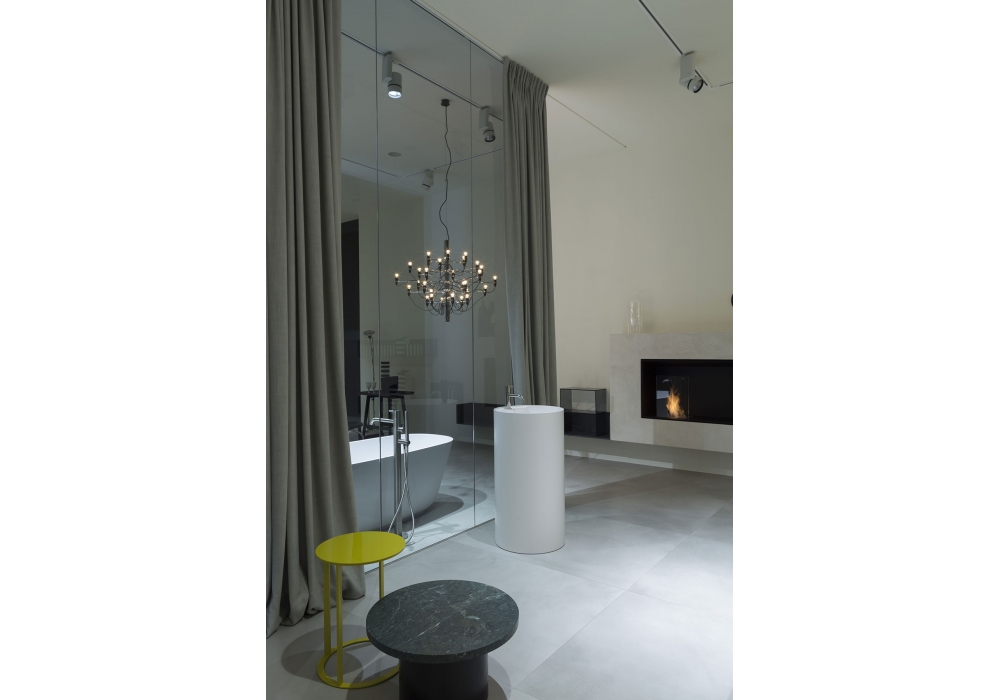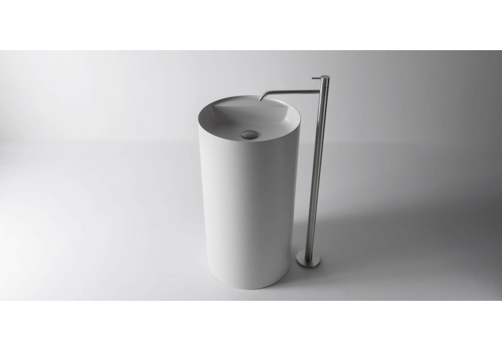 Simplo von Carlo Colombo für Antonio Lupi entworfen, ist ein bodenstehendes Waschbecken in Flumood, Colormood oder Stein mit Bodenablauf, komplett mit offenem Abfluss, Siphon und flexiblem Schlauch.
