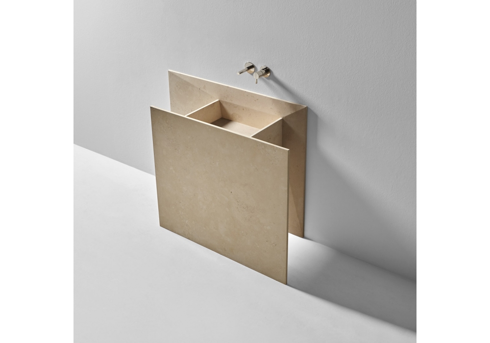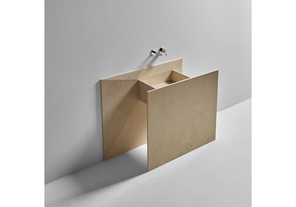 Skyline von Antonio Iraci für Antonio Lupi entworfen, ist ein wandmontiertes Waschbecken aus Stein. Es wird komplett mit einem Abfluss mit offenem Ablauf geliefert.