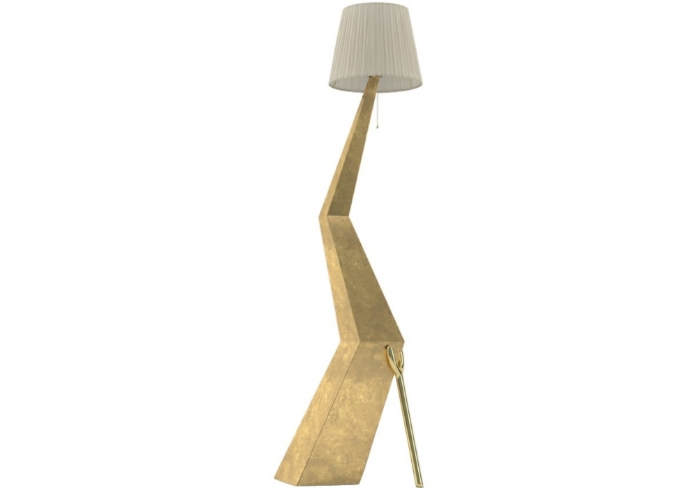 Bracelli, von Salvador Dalí für BD Barcelona Design entworfen, ist eine Stehlampe mit einer Holzbrettstruktur, die mit einer feinen Vergoldung bedeckt ist, die auch in einer dunkleren Version erhältlich ist. Der Lampenschirm ist mit elfenbeinfarbenem Baumwoll- und Viskosestoff bezogen.