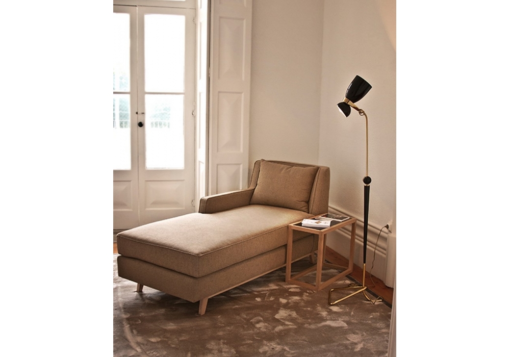 Amy von DelightFULL entworfen, ist eine Stehlampe aus Messing mit einem flexiblen Lampenschirm in glänzendem Schwarz. Fußschalter.