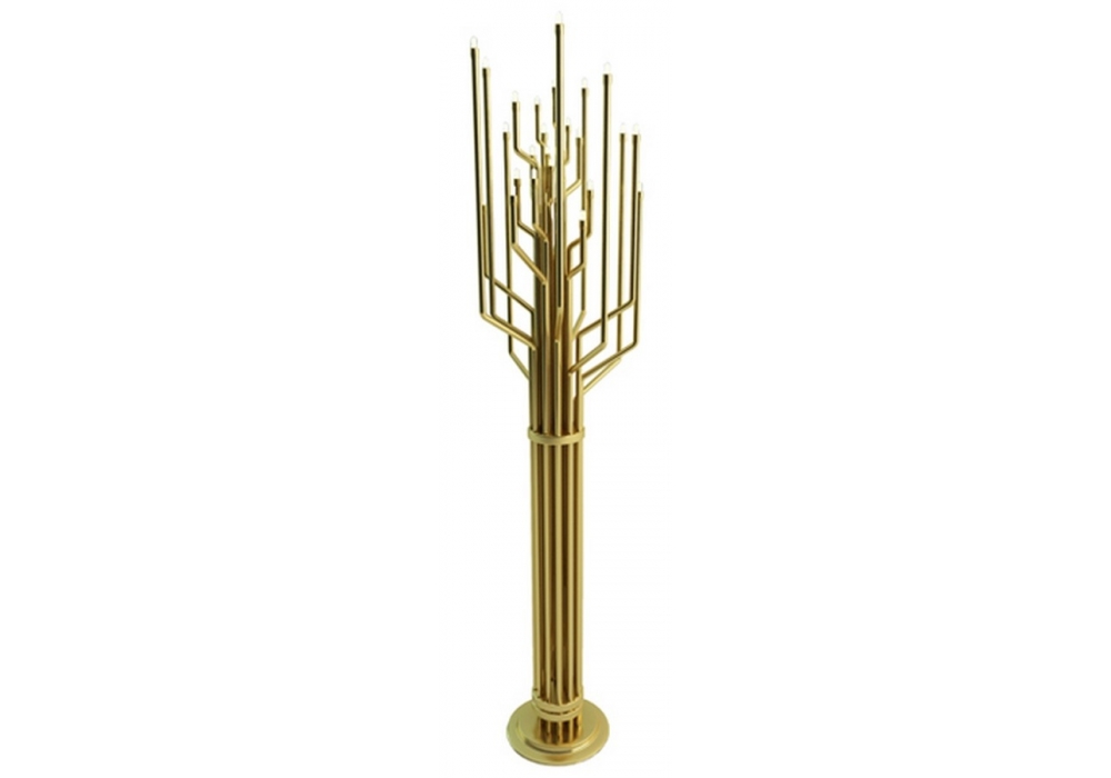 Janis, entworfen von DelightFULL, ist eine zu 100 % handgefertigte Stehlampe aus Messing, die sich durch hochwertige Verarbeitung auszeichnet.