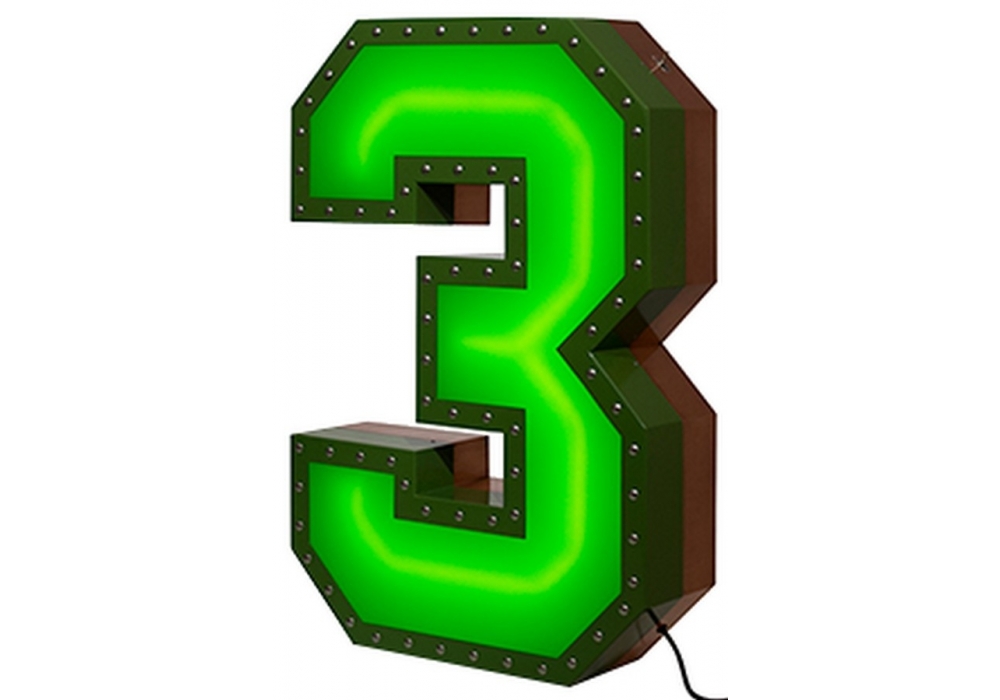Graphic Collection - Number 3 is a neon lamp designed by DelightFULL. With its contour aluminum and studded effect, it gives a lot of style to any club or lobby! The lighting is dim due to the green acrylic cover that brings softness to the whole. The stylish lamp can be used side by side with the other numbers or lyrics, bringing to any project a charismatic shape.