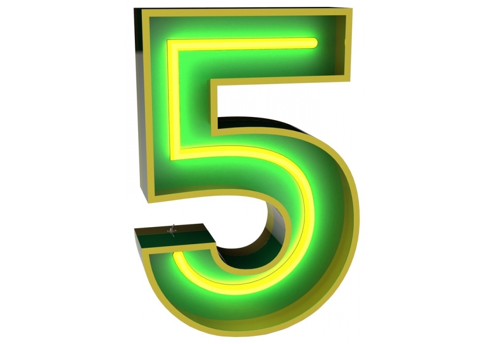 Graphic Collection - Number 5 is a neon lamp designed by DelightFULL. It has a very subtle soft round shape. The yellow neon color is brilliantly associated with matte traffic yellow and matte emerald green. The lamp will give your home a touch of originality. You can also use this lamp outside. You can either put it on the ground or on the wall.