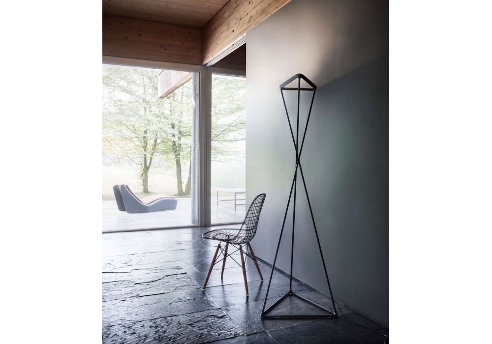 Tango von Francisco Gomez Paz für Luceplan entworfen, ist eine Stehleuchte mit Aluminiumstruktur, Elastomergelenken und dreieckigem Stahlsockel. Dank einer mechanischen Torsionsbewegung, die vom mittleren Teil der Stangen bis zum Reflektor beginnt, ist es möglich, den Lichtstrahl zu lenken. Die Lichtsteuerung erfolgt über Sensordimmer oder Fuß Ein/Aus. Verfügbar in der Version 2700K° oder 3000K°.