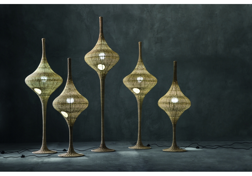 Spin von Michael Sodeau für Gervasoni entworfen, ist eine Stehleuchte aus natürlichem Mélange oder lackiertem Rattankern komplett mit Verkabelung. Glühbirne nicht im Lieferumfang enthalten.