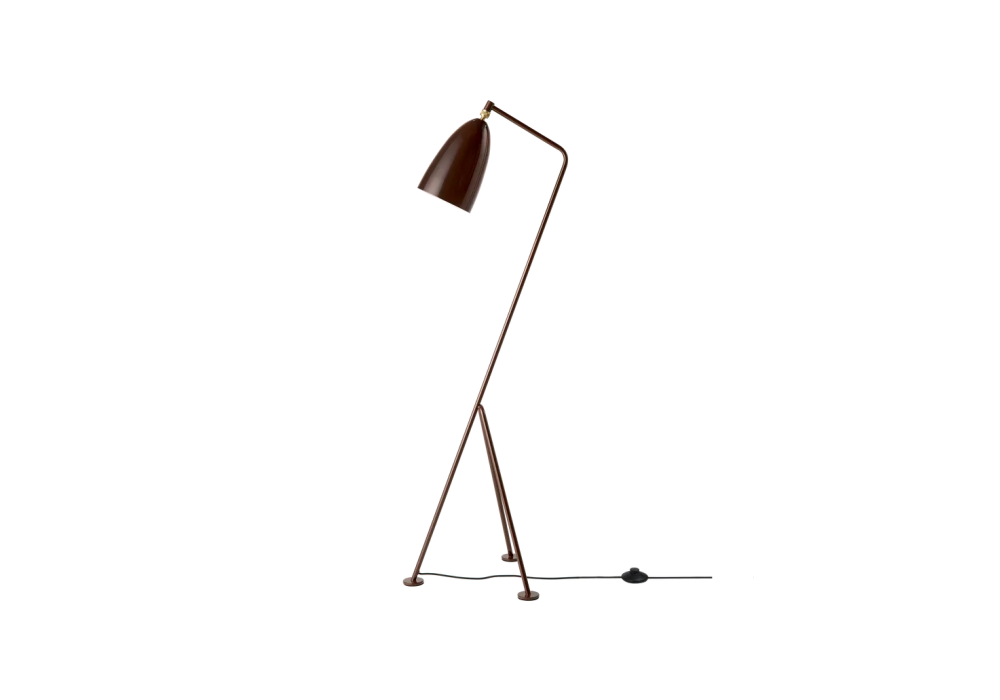 Gräshoppa, von Greta M. Grossman für Gubi entworfen, ist eine Stehleuchte mit Schirm, die um 360° gekippt und gedreht werden kann. Schalter auf dem Kabel. Birne nicht enthalten. Verfügbar in verschiedenen Ausführungen.