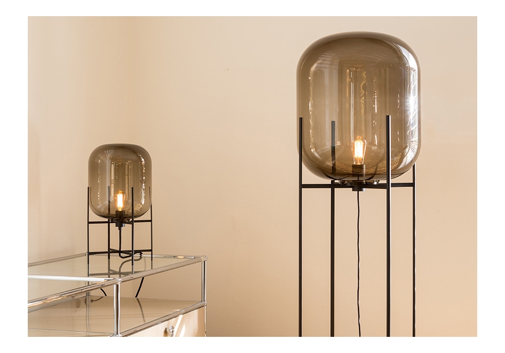 Oda von Sebastian Herkner für Pulpo entworfen, ist ein Stehleuchte aus mundgeblasenem Glas, Metallfuß und Textilkabel. Verfügbar in mehreren Ausführung und zwei Größen.