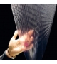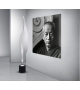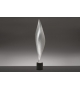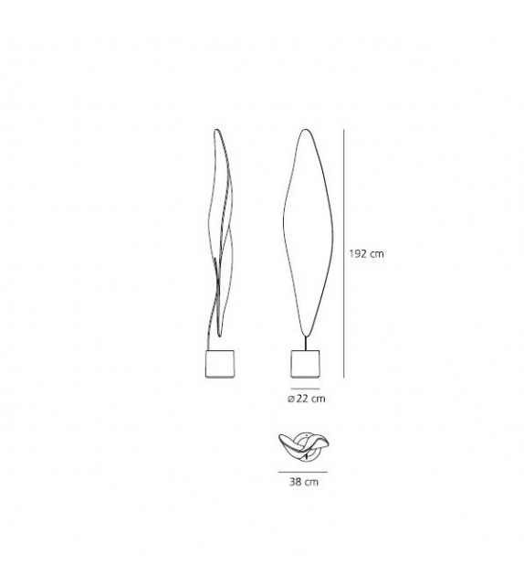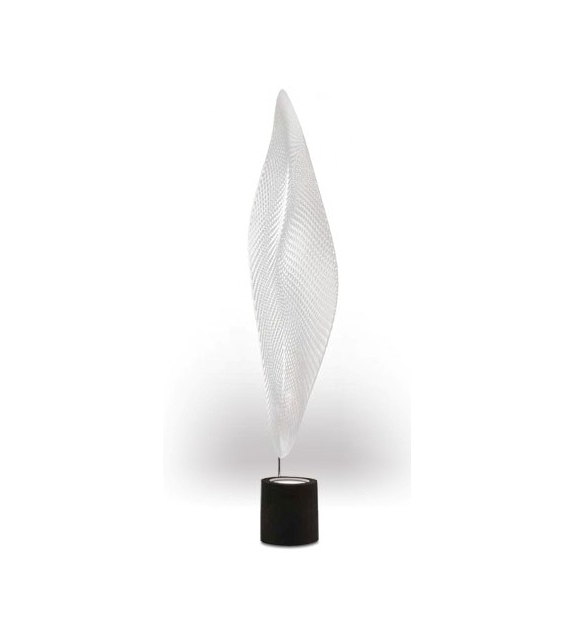 Cosmic Leaf von Ross Lovegrove für Artemide entworfen ist eine Stehleuchte mit zylindrischem Sockel aus lackiertem Metall. Der Leuchtenkörper ist mit einer LED-Lichtquelle in den Sockel integriert, während der Diffusor aus strukturiertem transparentem Methacrylat besteht.