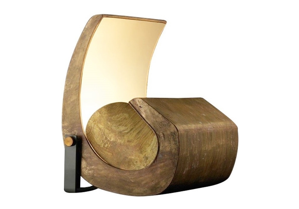 Escargot, von Le Corbusier für Nemo entworfen, ist eine Stehlampe, die vollständig aus antikem Messing besteht. Der Diffusor wird durch eine gebogene Aluminiumplatte strukturiert und nimmt eine Lichtquelle mit E27-Stecker und Kabeldimmer auf. Escargot ist auch in limitierter Auflage erhältlich.
