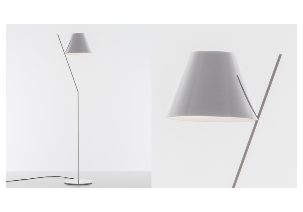 La Petite entworfen von Andrea Quaglio und Manuela Simonelli für Artemide ist eine Stehleuchte mit rundem Sockel und vertikaler Narbung aus lackiertem Aluminium. Der Lampenschirm besteht aus Polycarbonat mit einem internen Methacrylat-Diffusor und schirmt eine LED-Lichtquelle ab. La Petite ist in verschiedenen Ausführungen erhältlich.
