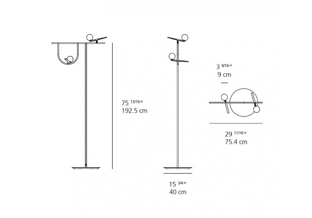 Yanzi, von Neri&Hu für Artemide entworfen, ist eine Stehleuchte mit rundem Sockel aus Zamak und vertikalem Stab aus lackiertem Stahlrohr. Die Diffusoren haben eine kugelförmige Form, bestehen aus mundgeblasenem Glas und verwenden LED-Lichtquellen mit einem Touch-Dimmsystem.