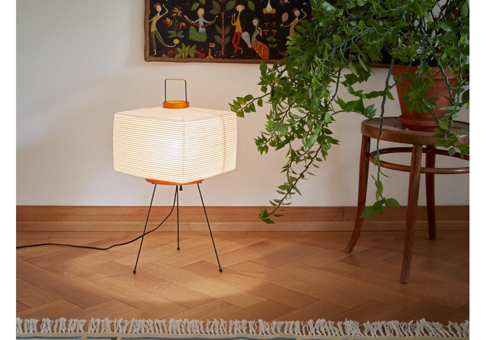 Akari 7A von Isamu Noguchi für Vitra entworfen, ist eine Stehleuchte, die Teil einer Serie von Lampen ist, die von japanischen Kunsthandwerkern aus traditionellem Washi-Papier handgefertigt werden. Der Name stammt von dem japanischen Wort 'Akari', was 'Licht' bedeutet und sowohl Beleuchtung als auch physische Leichtigkeit bedeutet. Struktur und Beine aus Bambus und Stahldraht.