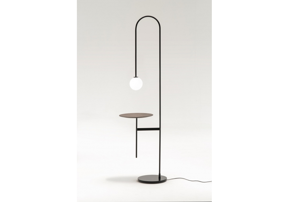 Light With a Table von Keiji Takeuchi für Living Divani entworfen, ist eine stehlampe mit integriertem beistelltisch. Es besteht aus einer Metallsockel und Metall Gestell, auf die ein runder Tisch durch einen 180 ° -Anschlag eingefügt wird.