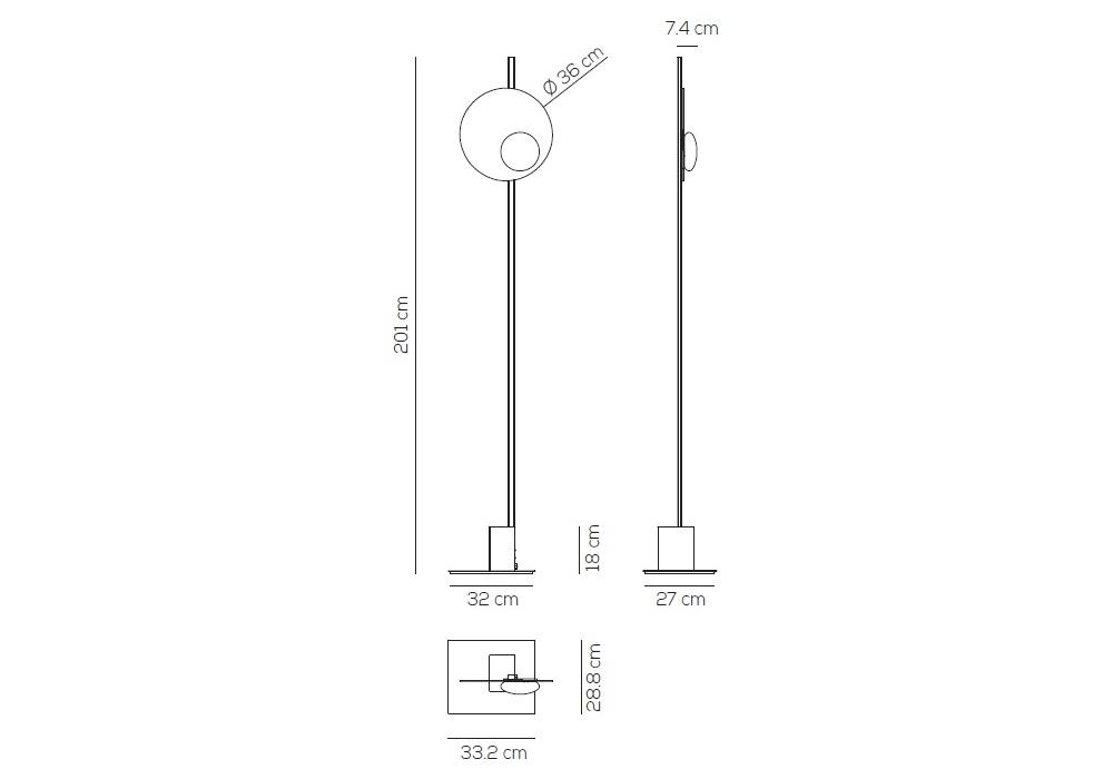 Kwic von S. & R. Cornelissen für Axo Light entworfen, ist eine Stehleuchte aus Stahl und Aluminium. Diffusor aus mundgeblasenem Opalglas. Erhältlich in verschiedenen Ausführungen. Dimmbare integrierte LED-Lichtquelle.