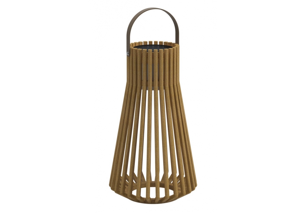 Ray von Henrik Pedersen für Gloster entworfen, ist eine Bodenlampe/Dekorative Lampe mit Gestell aus Teakholz und Ledergriff in natur Farbe. LED-Lichteinheit.