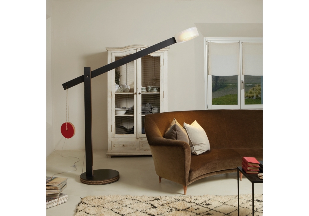 Flaminga designed by Kubedesign is a three-dimensional cardboard floor lamp with a wooden element as a counter-weight. Equipped with a joint to direct the light beam, the lamp is covered with white, black or red shockproof material.
