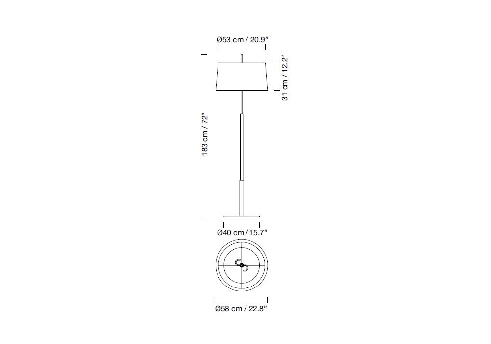 Diana Mayor von Federico Correa, Alfonso Milà, Miguel Mila für Santa&Cole entworfen, ist eine Stehleuchte aus einer Metallstruktur und einem Diffusor, der in verschiedenen Ausführungen erhältlich ist.