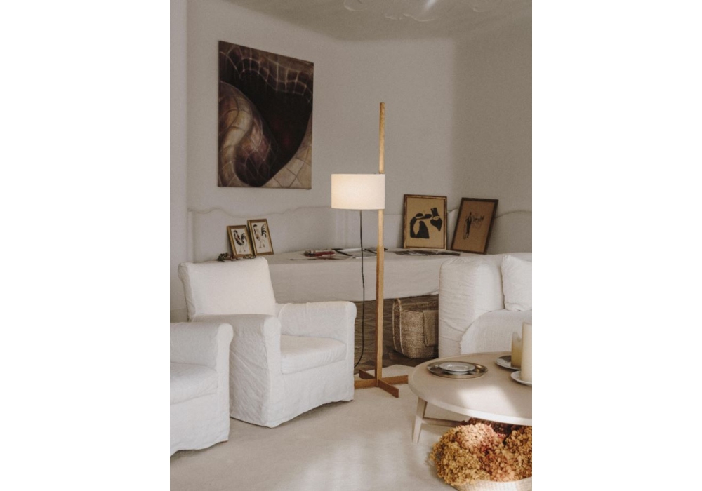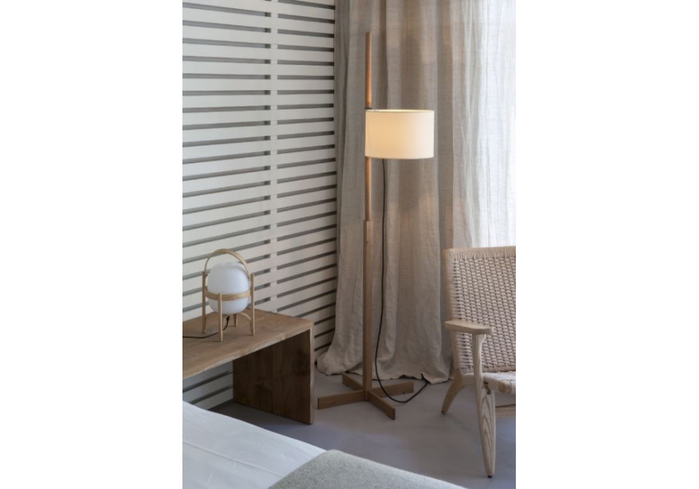 TMM von Miguel Milá für Santa&Cole entworfen, ist eine Stehleuchte mit einer Holzstruktur in verschiedenen Hölzern und Lampenschirm in verschiedenen Farben erhältlich. Durch leichtes Ziehen am Kabel wird das Licht ein- und ausgeschaltet.