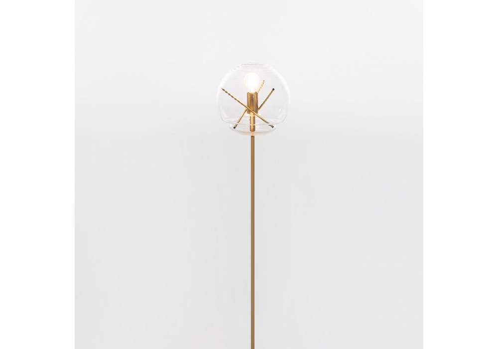 Vitruvio von Atelier Oï für Artemide entworfen ist eine Stehleuchte mit rundem Sockel und vertikalem Stab aus lackiertem Stahl. in verschiedenen Ausführungen. Der Diffusor hat eine Kugelform aus transparentem oder rauchigem mundgeblasenem Glas und schirmt eine dimmbare LED-Lichtquelle ab. Vitruvio ist in verschiedenen Ausführungen erhältlich.
