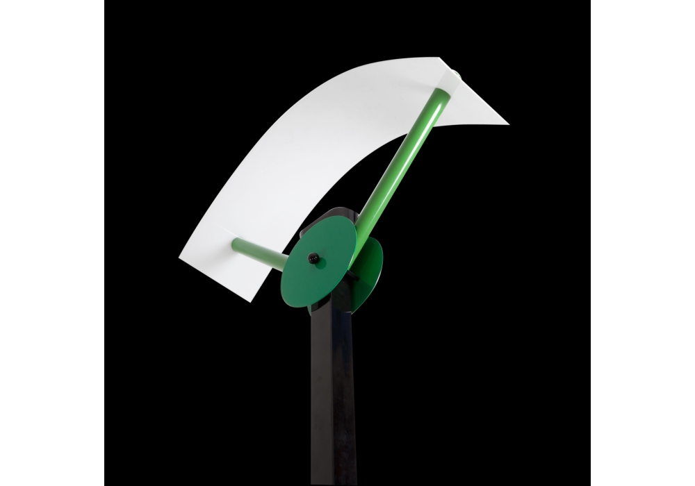 Grand von Michele De Lucchi für Memphis Milano entworfen, ist eine Stehleuchte mit Metallstruktur und Lampenschirm aus Plexiglas.