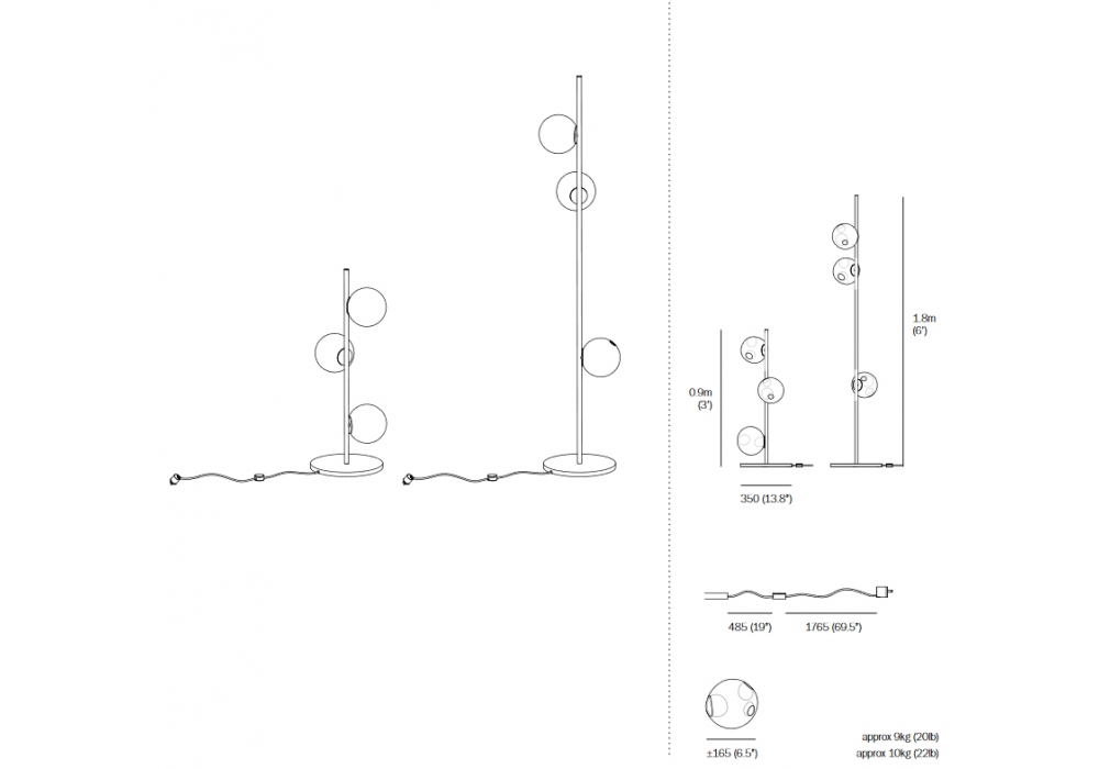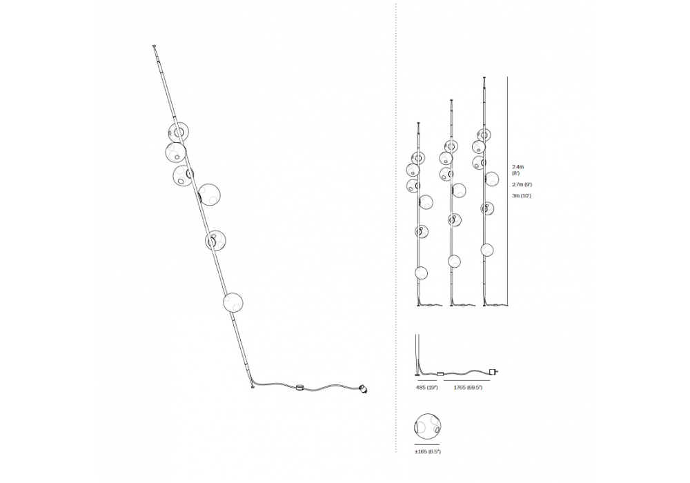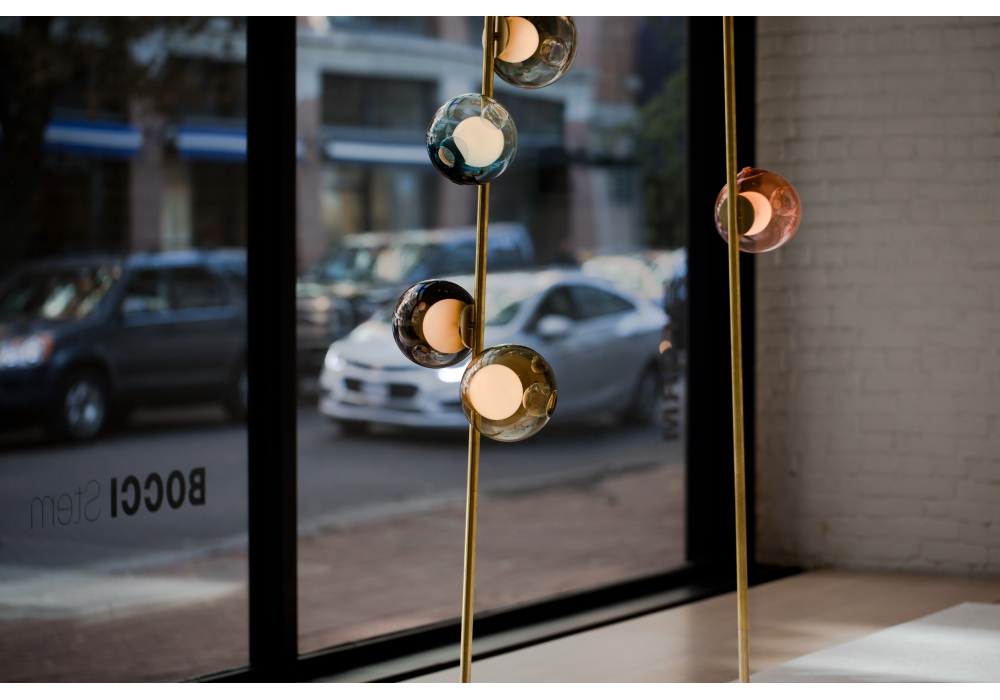 28 Stem von Omer Arbel für Bocci entworfen, ist eine Stehleuchte mit röhrenförmigem Gestell und rundem Messingfuß verfügbar in zwei verschiedenen Ausführungen, Messing oder mattschwarz. Die Diffusoren sind aus mundgeblasenem Glas mit LED-Lichtquelle. 28 Vorbau ist in verschiedenen Ausführungen und Größen erhältlich.