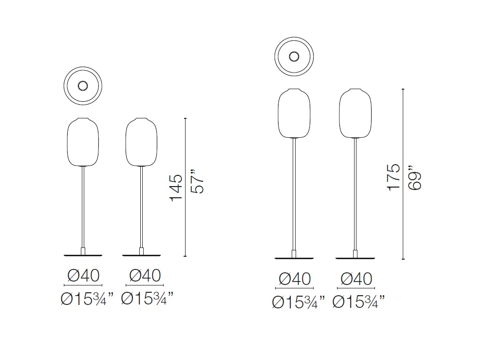 | Abmessungen | Ø 40 x H 145 cm; Ø 40 x H 175 cm. |