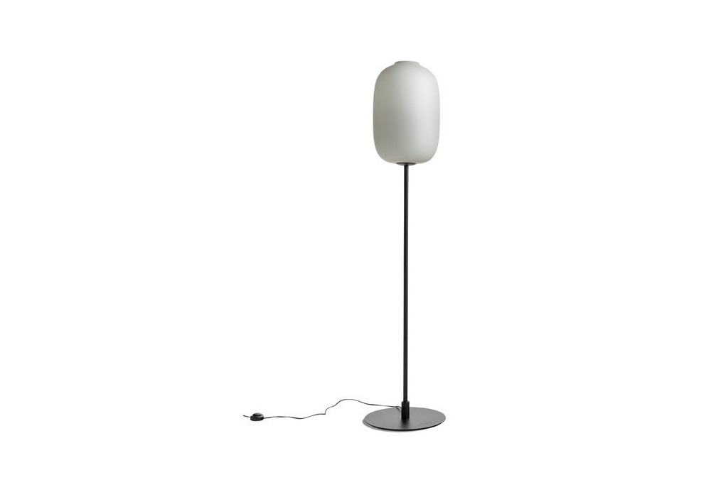 Arya von Giulio Cappellini & Antonio Facco für Cappellini entworfen, ist eine Stehleuchte mit Platte und Rohr aus matt schwarz lackiertem Metall und Diffusor aus farbigem mattem Glas. Verfügbar in mehreren Ausführungen und Abmessungen.