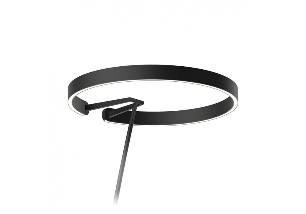 Mito Raggio von Occhio entworfen, ist eine LED-Stehleuchte mit Diffusor aus lackiertem Aluminium und beschichtet mit PVD und optischem Silikon, Körper aus Karbon lackiert und Sockel aus lackiertem Stahl. Auf und ab verblassen. Erhältlich mit integrierter Bluetooth-Steuerung oder mit Fernbedienung. Occhio air App im App Store oder Google Play Store erhältlich.