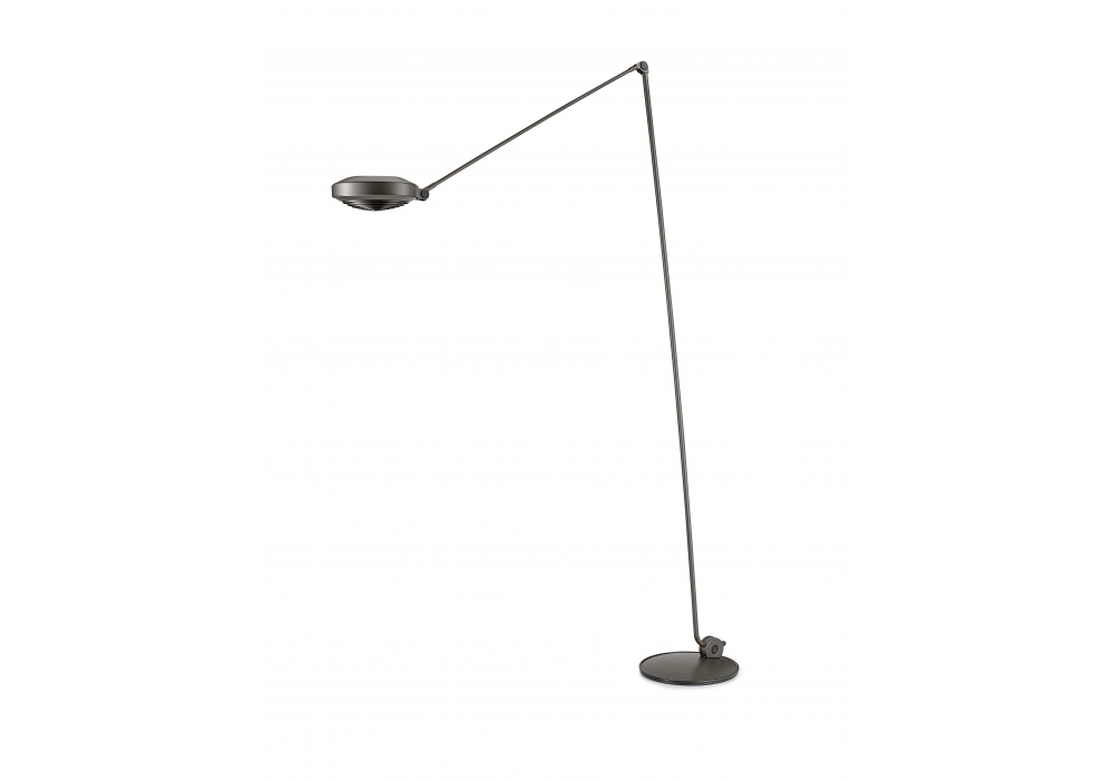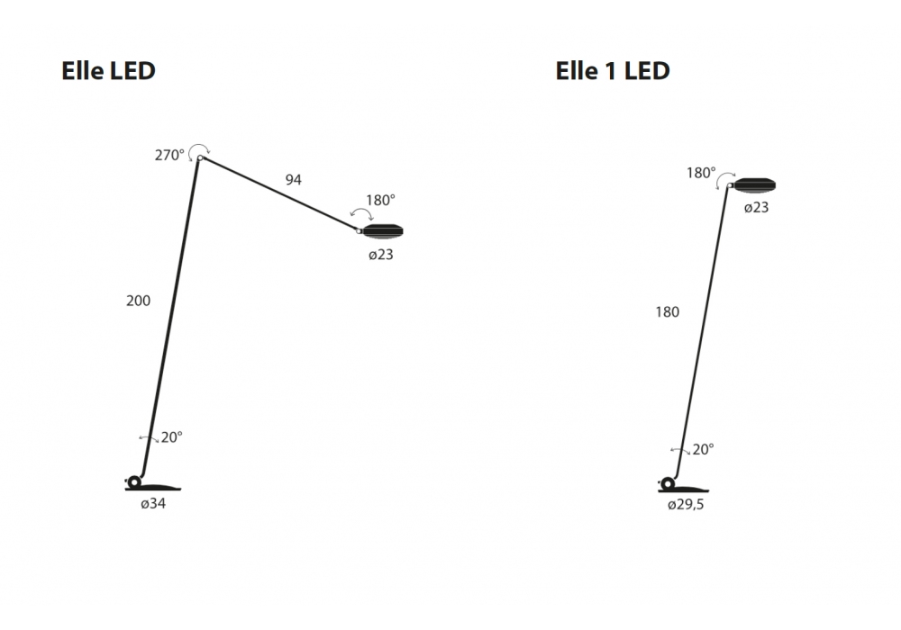 Elle LED, von Tommaso Cimini für Lumina entworfen, ist eine Stehleuchte mit Struktur aus Aluminium und Stahl mit vertikal beweglichen Armen und runder Basis. Der Diffusor ist vertikal um 180 ° verstellbar und nimmt eine dimmbare LED-Lichtquelle auf. Elle LED ist in verschiedenen Ausführungen und Modellen erhältlich.