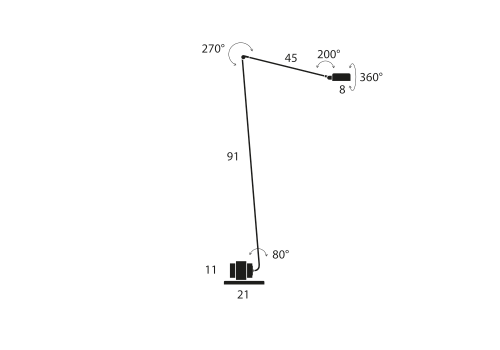 Daphine Classic von Tommaso Cimini für Lumina entworfen, ist eine Stehleuchte mit verstellbaren beweglichen Armen aus lackiertem Metall in verschiedenen Ausführungen. Die Basis ist rund aus schwarz lackiertem Gusseisen. Der Diffusor kann vertikal um 360 ° und 200 ° gedreht werden und verwendet eine Halogenlichtquelle mit Doppelschalter.