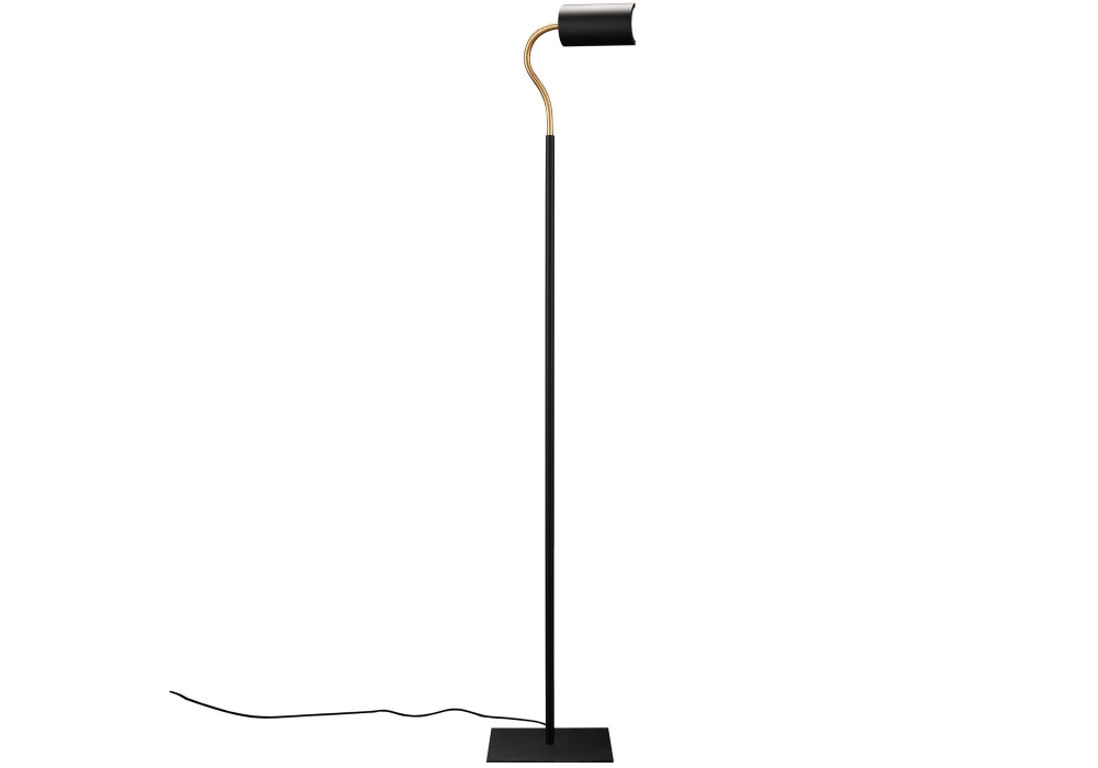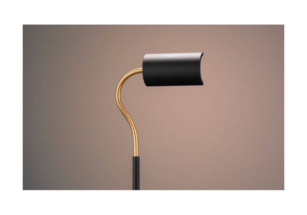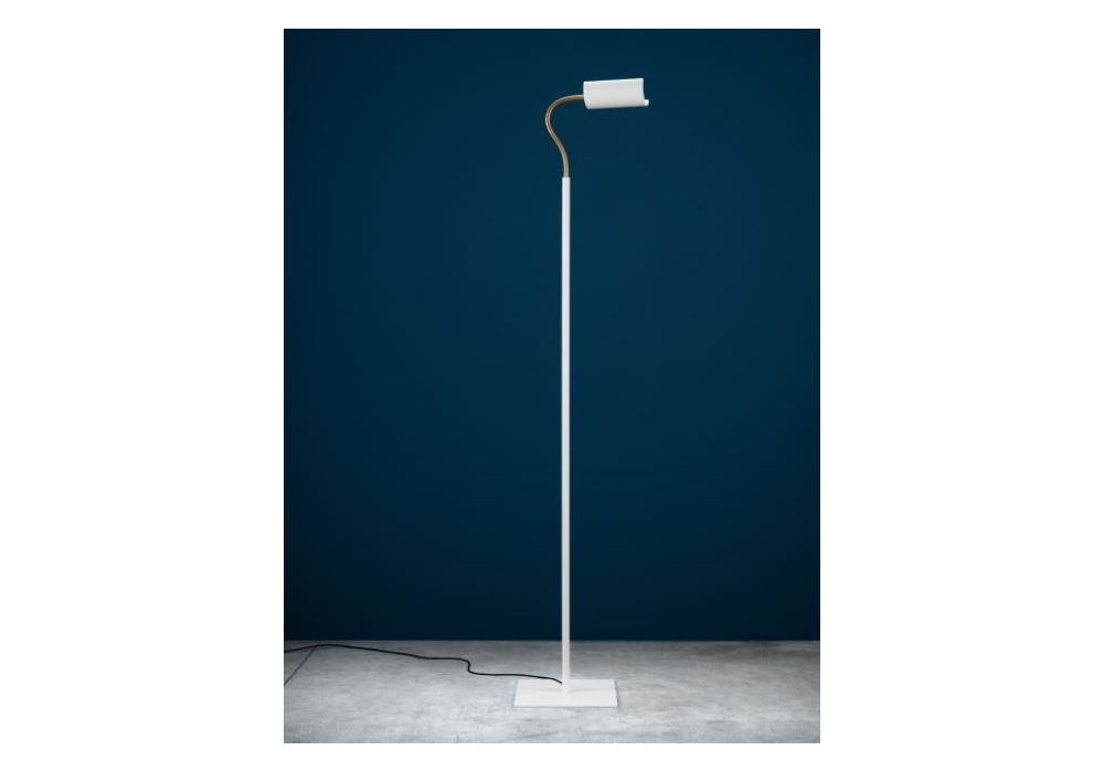 U. F Flex, entworfen und hergestellt von Catellani & Smith, ist eine dimmbare LED-Stehleuchte mit Struktur und Schirm aus schwarzem oder weißem Metall, Flex aus Messing.