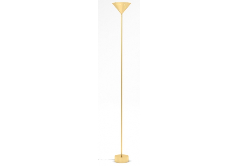 Sliver Cone von Atelier Areti entworfen, ist eine Stehleuchte aus pulverbeschichtetem Metall oder gebürstetem Messing. Erhältlich in zwei Modellen.