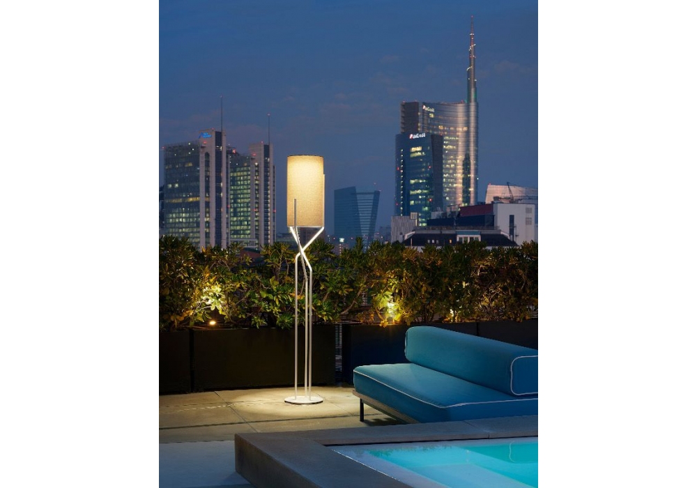 Aura von Ilaria Marelli für Slide entworfen, ist eine Stehlampe aus lackiertem Eisen, der Lampenschirm ist aus wasserdichtem Stoff. Erhältlich in verschiedenen Ausführungen für den Lampenschirm und den Stab.