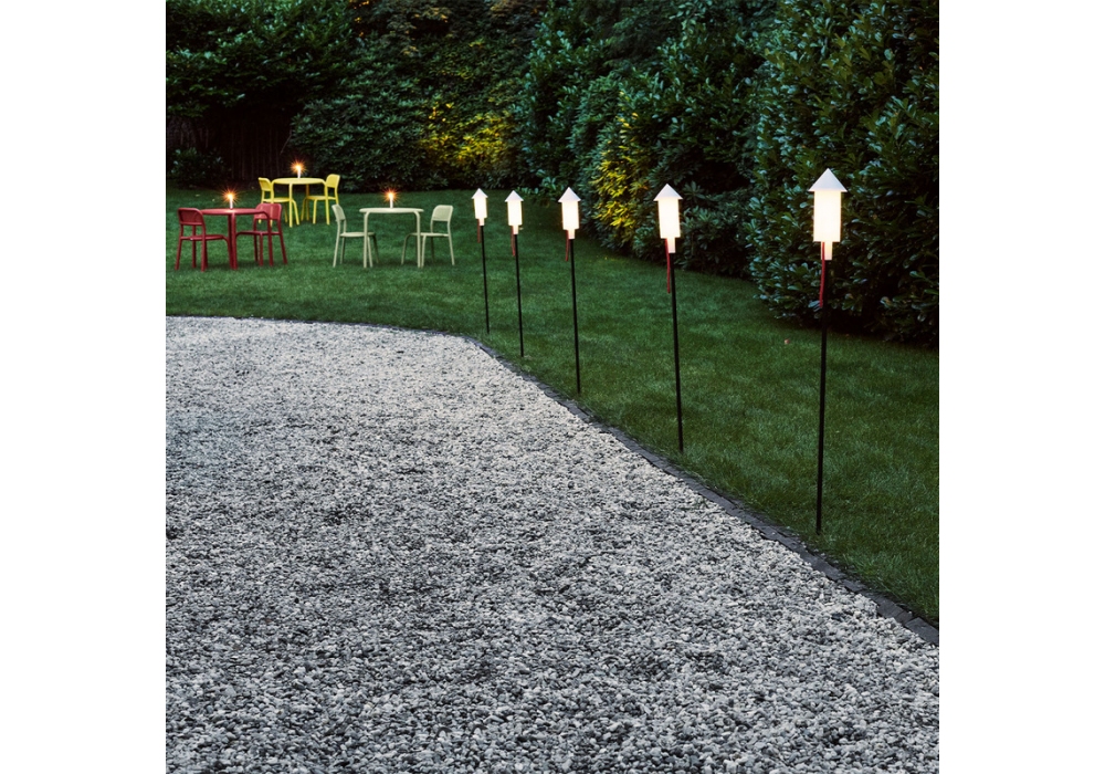 Prêt a Racket, entworfen von Fatboy, ist ein 3-teiliges Set aus Stehleuchte, die sich bei Dunkelheit von selbst ein- und wieder ausschalten. Vollständig solarbetrieben, daher einfach zu bedienen. Die Lampen bieten eine gemütliche Atmosphäre, da sie ein warmes Licht abgeben.