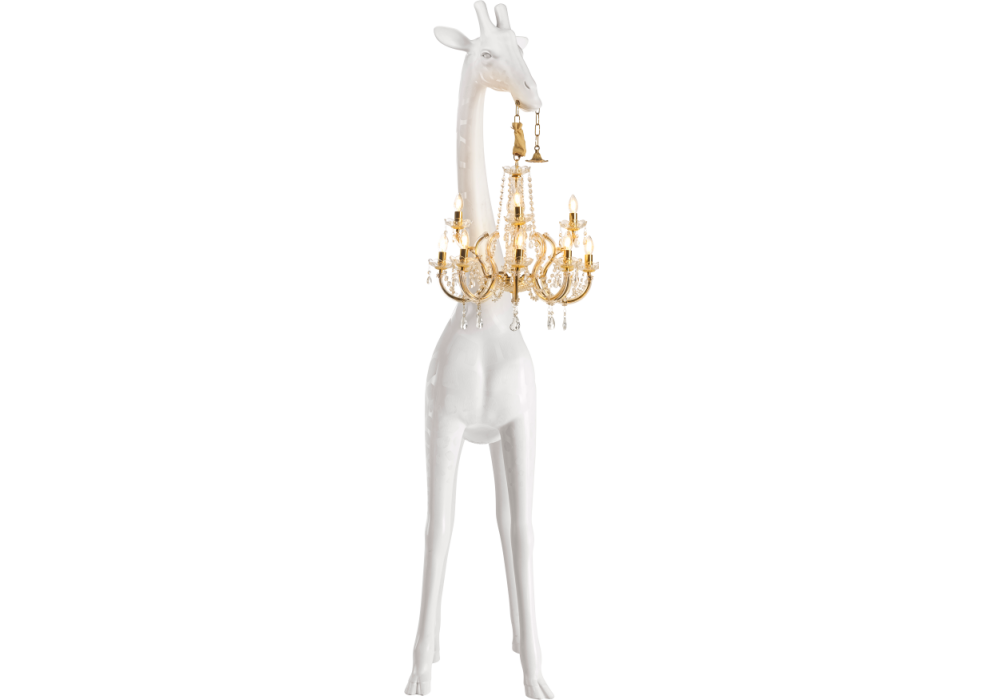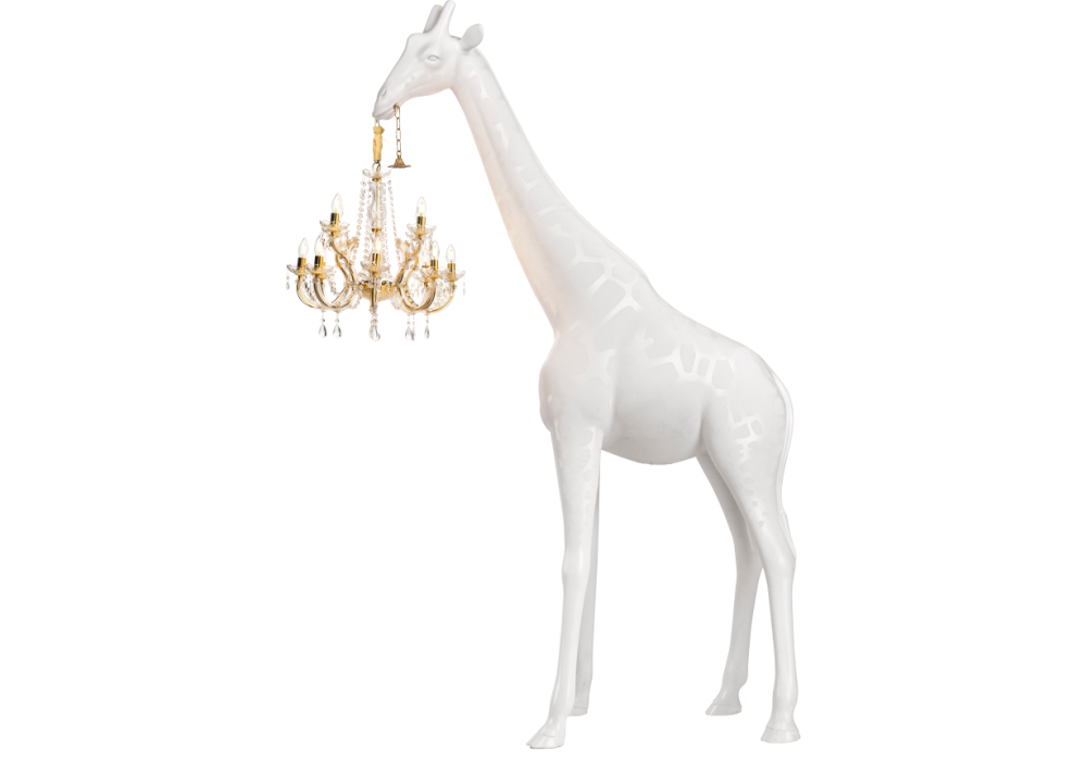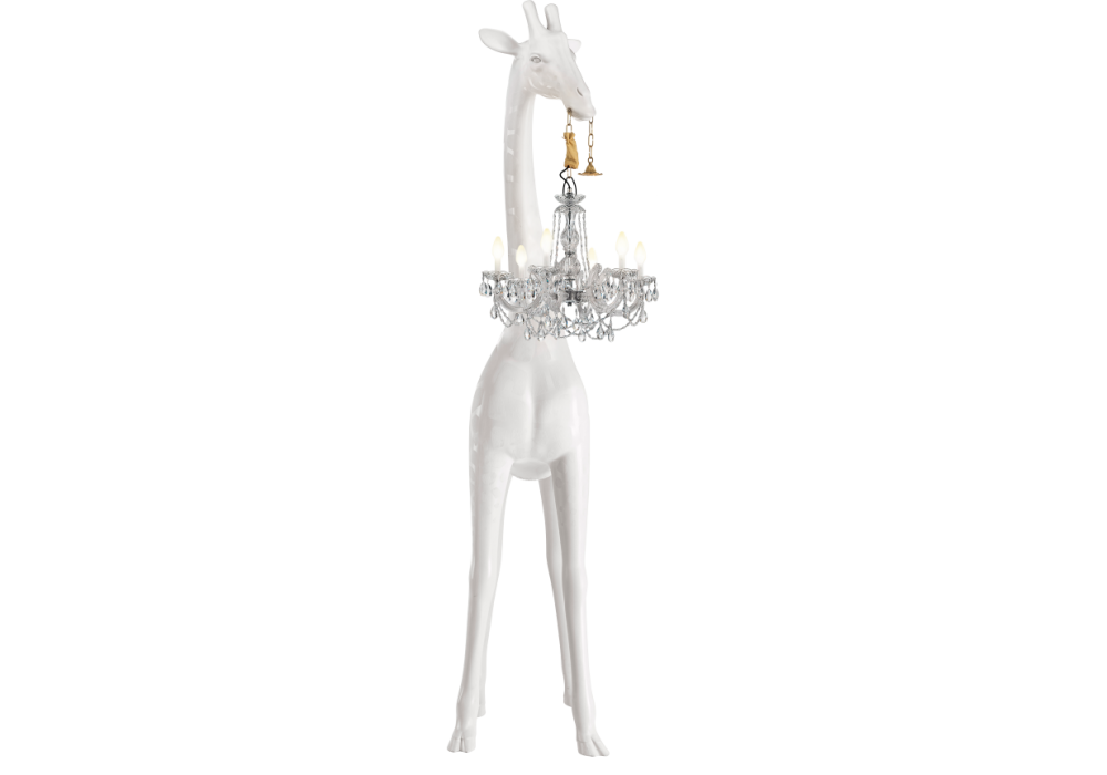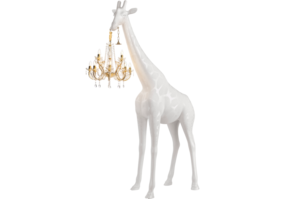 Giraffe in Love M von Marcantonio für Qeeboo entworfen, ist eine Stehleuchte aus Polyethylen, Polycarbonat und Glas, die in verschiedenen Ausführungen erhältlich ist. Die verwendete Lichtquelle ist vom LED-Typ. Giraffe in Love ist in der Indoor- und Outdoor-Version erhältlich.