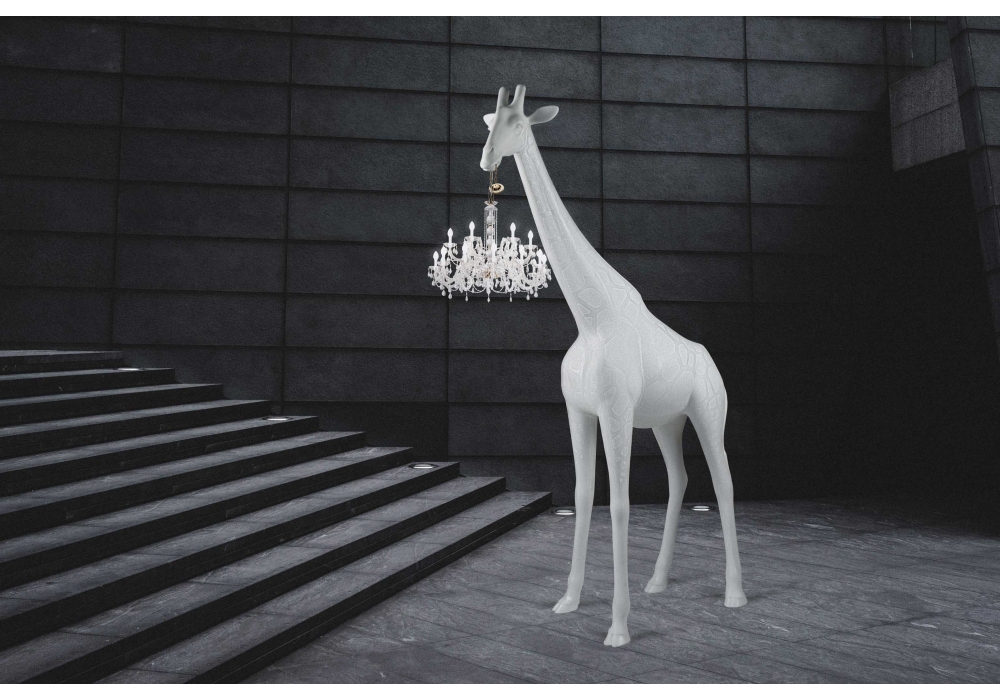 Giraffe in Love XL von Marcantonio für Qeeboo entworfen, ist eine Stehleuchte aus Glasfaser, Methacrylat und Glas, die in verschiedenen Ausführungen erhältlich ist. Giraffe in Love XL ist als Indoor- und Outdoor-Version erhältlich.